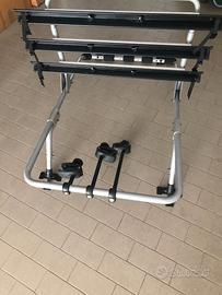 Porta bici posteriore sicuro e robusto, una volta montato non copre luci posteriori e targa. La bicicletta viene trattenuta da due cinghie regolabili per le ruote e da una pinza blocca telaio con serratura antifurto. Numero max di bici trasportabili 3.