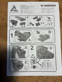 Vendo portabici da tetto Thule Pro Ride 598, usato pochissimo, con istruzioni originali e chiavi, a 120 €; vendo anche separatamente, barre portatutto da tetto Althura Torque con istruzioni originali e chiavi a 120 €; a chi acquista entrambi gli articoli regalo portasci per barre Green Valley mod. Rider 4.