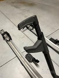 Portabici Thule modello ProRide, da tetto, in nero/alluminun. Montaggio super pratico, rapido e comodissimo. Canaline aggancia ruota con fissaggio integrato, pinza blocca telaio che permette di fissare la bici in pochissimi secondi. Pinza con cuscinetti morbidi che non rovinano il telaio della bici. Il sistema di chiavi e serrature sia del portabici alla macchina che nel fissaggio della bici, riduce il rischio di furto.
