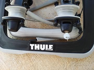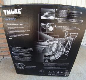 Portabici Thule Raceway 991 originale per 2 bici da portellone posteriore, molto resistente e compatibile con molte auto, chiusura con chiave per tenere al sicuro le bici. Come nuovo mai utilizzato, solo provato 2 volte non in strada, unica usura che si vede anche in foto (4) si è leggermente segnato appoggiandolo sul pavimento per appoggiarlo. Vendo con la sua scatola originale. Prezzo leggermente trattabile.