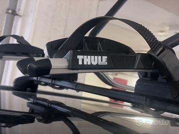 Vendo due portabici verticali Thule ProRide da tetto nero/aluminio con chiavi di sicurezza antifurto, per bici fino a 20 kg.