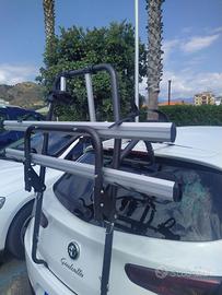 Si adatta al bagagliaio di tutte le auto, una soluzione ideale, senza disporre di un gancio di traino. L'aggancio doppio e i robusti bracci di alluminio con protezione in gomma (su tutte le aree di contatto con l'auto) garantiscono che il portabici sia saldamente fissato alla tua auto. I bracci che supportano le bici, si ripiegano quando non vengono usati e il portapbici può essere ripiegato e diventare piatto