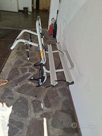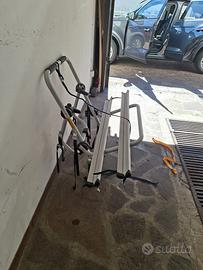 Vendo porta bici per due biciclette,marca "Peruzzo" universale, da montare sul portellone posteriore della vettura.Struttura tutta in alluminio, usato solo alcune volte.