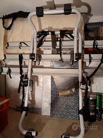 Vendo causa inutilizzo portabici da portellone, modello Padova, universale, compatibile con la maggior parte delle auto, richiudibile, per il trasporto di tre biciclette per un peso massimo di 45 kg.