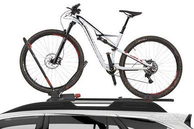 NUOVO MAI APERTO Descrizione: Trasporta la tua bici completa (anche le E-BIKE elettriche), senza che sia necessario rimuovere le ruote. Il sistema di montaggio universale si adatta a quasi tutte le barre trasversali possibili e immaginabili, tranne le barre quadrate con una profondità superiore a 38 mm. Questo portabici da tetto con fissaggio della ruota anteriore è facile da istallare senza attrezzi specifici e mantiene la tua bici in condizioni perfette, senza toccare nessuna superficie verniciata. Può trasportare una bicicletta fino a 18 kg con distanza minima di 46 cm tra le barre; o fino a 13,6 kg con distanza minima di 41 cm tra le barre. Adatto per ruote da 20"a 29" con larghezza del pneumatico fino a 3" . NUOVO MAI APERTO
