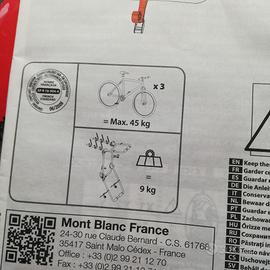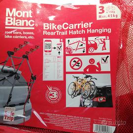 Nuovo portabiciclette Mont Blanc. Mis 60x75 vedere le descrizioni in foto. Adatto a tutte le auto con portellone dietro. Senza cartellino, forse non l'ho mai avuto......