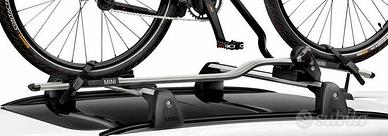 Supporto per 2 bici, con sistema di fissaggio dotato di serratura - per biciclette con peso pari a max. 20 kg cad. e diametro del telaio compreso fra 22 e 80 mm - montaggio agevole senza attrezzi, adatto a tutti i sistemi portapacchi MINI