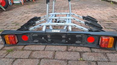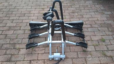 Portabiciclette per tre bici da applicare sul gancio traino. Perfettamente funzionante, ma privo dei documenti di certificazione.
