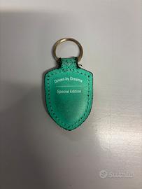 Vendo portachiavi Porsche originale in pelle, con stemma Porsche in metallo sul fronte e scritta “Driven by Dreams – Special Edition” sul retro.