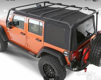 Vendo usato solo una volta portapacchi a gabbia veramente molto robusto per Jeep Wrangler JKU ( 4 porte ) con la possibilità di scegliere il doppio attacco posteriore : alla carrozzeria ( che io consiglio con minimo intervento ) oppure al telaio ( con piccola modifica al paraurti se originale ) . Nel kit sono compresi entrambi gli attacchi.