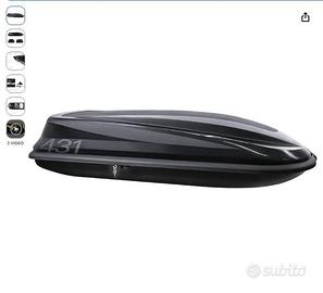 Vendo per inutilizzo baule da tetto per auto CAM Box Sport 431. Il prodotto è nuovo, mai montato e mai utilizzato, perfetto in ogni sua parte. Si tratta di un box di alta qualità, ideale per chi ha bisogno di spazio extra per viaggi in famiglia, attrezzatura sportiva o campeggio senza rinunciare all'aerodinamicità. Caratteristiche principali: Capacità: 430 Litri (molto capiente, perfetto per valigie e attrezzatura ingombrante). Colore: Nero opaco (elegante e resistente). Dimensioni: Circa 180 x 78 x 37 cm. Sicurezza: Chiusura centralizzata con chiave (doppia chiave inclusa). Materiale: Polipropilene ad alta resistenza, trattato contro i raggi UV per evitare lo sbiadimento. Montaggio: Sistema di fissaggio rapido e universale, compatibile con la maggior parte delle barre da tetto in commercio. RITIRO IN LOCO