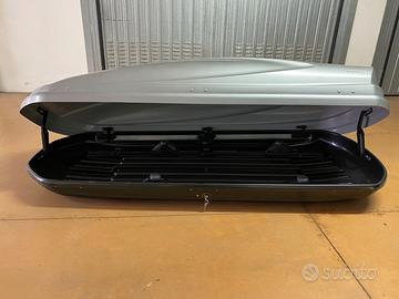 Portapacchi + Box per Audi A4 completo di chiusura chiave di barre per il fissaggio sull'auto. Vendo anche n. 02 portabici piegabili (qualora dovessi trasportare delle bici) completi di chiusura con chiave.