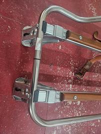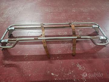 Portapacchi cromato per spider con inserti in tek e cinghie in cuoio,nuovo mai utilizzato, corredato attacchi e bulloneria,ottime condizioni. Posso spedire. Auto epoca,spider,cabrio.