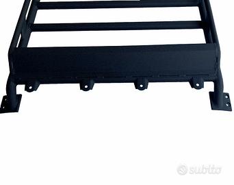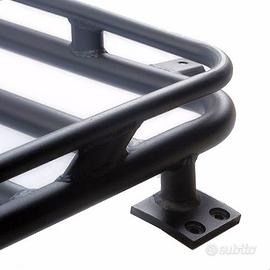 Portapacchi in alluminio per Suzuki Jimny (dal 1998 al 2017). Portapacchi heavy duty in alluminio ultraleggero e resistente. Verniciato a polvere colore nero, goffrato. Pronto da installare, essendo un pezzo unico non necessita di essere montato. Necessitando di fori alla carrozzeria si consiglia di far effettuare l’installazione ad un meccanico qualificato. Dotato di attacchi per fari supplementari (4 anteriori e 23 posteriori). Per il montaggio si utilizzano i bulloni originali che fissano le barre longitudinali alla vettura. La vasca interna misura 100×91 cm.