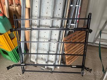 Vendo portapacchi per auto in ottime condizioni come si vede in foto è completamente regolabile, sia la disposizione degli agganci che delle barre trasversali, si adatta al veicolo posseduto, sono state acquistate per una Fiat Panda, utilizzato due volte e riposto per inutilizzo e demolizione auto.