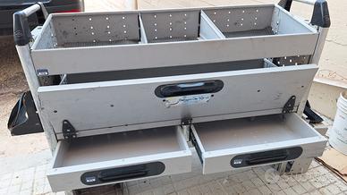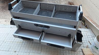 Portapacchi in alluminio più tubo porta canalette compreso di staffe per il montaggio. Cassettiera porta attrezzi .
