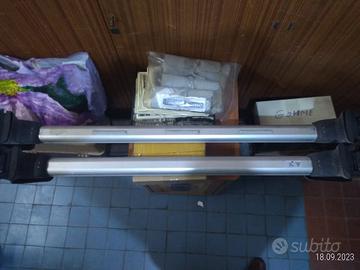Portapacchi per Mercedes C180 SW - Anteriore misure da cm. 103,50 a 106,50 - Posteriore misure da cm. 97 a 99 peso totale Kg. 4,100. Completo di 2 chiavi e accessorio per serrare le viti. In ottime condizioni, molto robusti, consegna a mano a Roma zona Marconi/San Paolo o spedizione ma dovete essere assolutamente sicuri delle misure.