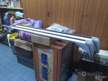 Portapacchi per Mercedes C180 SW - Anteriore misure da cm. 103,50 a 106,50 - Posteriore misure da cm. 97 a 99 peso totale Kg. 4,100. Completo di 2 chiavi e accessorio per serrare le viti. In ottime condizioni, molto robusti, consegna a mano a Roma zona Marconi/San Paolo o spedizione ma dovete essere assolutamente sicuri delle misure.