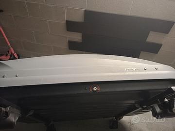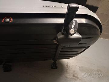 Vendo portabagagli Thule, buone condizioni, compreso di struttura per il montaggio su barre laterali auto , comodissimo da montare ,non servono chiavi o cacciaviti, libero da subito