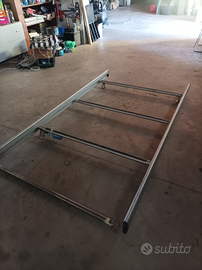 Struttura in robusto Alluminio ..4 staffe e RULLO posteriore in acciaio inox ..Ideale x Scudo/Doblo'/Qubo/Fiorino/Tourneo/Kangoo..e tanti altri ..PREDISPOSTO per portascale scorrevole a rientrare ( che ho in vendita a Parte)8 due profili laterali robustissimi permettono di legare travature..porte..scale ..pali .....non fare offerte ..prima informativi del costo o prendete due barre portatutto x risparmiare ..questo costa quasi 500 euro ..ideale x artigiani .marca SYNCRO misura 230x130..le 4 staffe di fissaggio inox hanno il foro centrale da 10 mm quindi dovete controllare se interasse dei vostri fori è in lunghezza da 150 a 225 e in larghezza da 90 a 125 cm le staffe sono regolabili su guide scorrevoli già predisposte per quasi tutti i furgoni compatti
