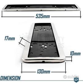 KIT Professionale Portatarga Posteriore Cromato, in Acciaio Inossidabile SS304 e Supporto Targa in POM (Poliossimetilene) Estruso. - Eccellenza dei Materiali | Resistenza al Tempo - Corrosione - Decoloramento - Stravolge il LOOK Rendendolo d' Impatto | Cornice Targa a Scomparsa - Facile Installazione | 100% LEGALE su Strada COMPATIBILITÀ: - UNIVERSALE E' applicabile su qualsiasi veicolo con una Rientranza sul paraurti dove sarà possibile fissare la staffa (GUARDA FOTO). INFO: Il Portatarga Posteriore Professionale in Acciaio INOX è un Prodotto Garantito 10 Anni, Caratterizzato dall' Eccellente qualità e Durevolezza dei materiali, Dalla finitura, al dettaglio e tatto. E' un Prodotto Testato da Molti Anni per Resistere al Tempo intemperie e ai detriti di percorrenza, senza perdere la sua Lucentezza, colorazione e caratteristiche. Facile installazione a scomparsa, Massima Adattabilità, Fornisce un Look Sportivo e Rinnovato , Rendendo l' Auto più Accattivante. CORNICE IN ACCIAIO INOX SS304: L' Acciaio Inox SS304 Rappresenta uno dei più Costosi Acciai in commercio, il Famoso ""18-10"" del Servizio di Posate o Pentole. E' un Acciaio Austenitico, poichè contiene un alto livello di Cromo, Esattamente il 18%, e l'8% di Nichel; le Propietà Fondamentali Sono: - Eccellente Nella Resistenza Alla Corrosione - Facilità di Ripulitura, Lucidatura ed Coefficente Igenico - Altissima Facilità di Lavorazione o Saldatura - Non è Particolarmente Magnetico DETTAGLI TECNICI: - Materiale : Acciaio INOX - Colore: Cromato - Finitura: Cromata - Peso: 271Gr - Lunghezza: 535 mm - Altezza: 130 mm - Profondità: 10 mm - Temperatura di lavoro Compresa tra - 40°C / +65°C - Fissaggio: Viti di Fissaggio - Condizioni: Nuovo PER INFO CONTATTARE AL 3927091031 ANCHE LINEA WhatsApp OPPURE VIA E-MAIL: rtautoitalia2018@libero.it CONSEGNA: - Effettuiamo Spedizioni 24-48H in TUTTA ITALIA - Ritiro in Sede PAGAMENTI: - PayPal - Con Carta - Bonifico Bancari
