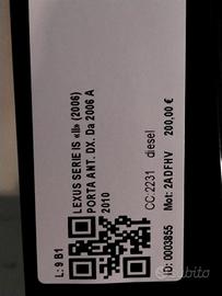 PORTIERA ANTERIORE DESTRA LEXUS IS Serie (350) PORTA 6700153040 2ADFHV (05>13)