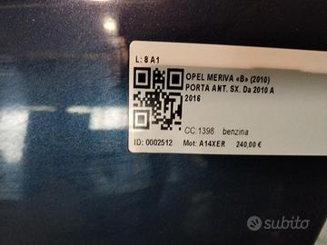 PORTIERA ANTERIORE SINISTRA OPEL Meriva 3° Serie 13408828 PORTA A14XER (10>)