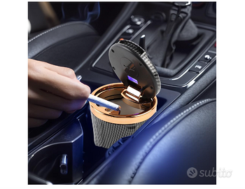 Posacenere per auto antiodore , con supporto da bocchetta , luce led effetto carbonio