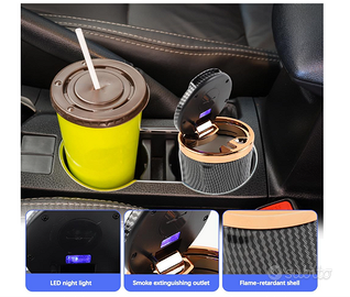 Vendo Posacenere per auto antiodore , con supporto da bocchetta , luce led effetto carbonio . Nuovo con scatola. Il posacenere è effetto carbonio con striscia oro rosa. Il posacenere chiudibile ha effetto antiodore mantenendo l'odore di fumo internamente allo stesso . Ha una comoda luce led blu che si accende all'apertura , funziona a batteria già inclusa e cambiabile. Può essere inserito se la macchina le ha , dentro i porta bicchieri. Oppure ha il supporto con agganci per le bocchette dell'aria , con vari adattatori inclusi . Per le varie tipologie di bicchette . Completa il tutto un piccola spazzolina per pulirlo. Ha una capacità ampia e facilmente estraibile per essere pulito . Esteticamente molto bello e ben fatto . Utile sicuro , pulito e inodore . Perfetto , per auto , camper , camion , furgoni o anche per casa . Per chi non rinuncia a fumare in auto e vuole mantenere la pulizia e l'igiene. Soprattutto evitando di buttare mozziconi fuori dal finestrino ed evitando l'inquinamento.