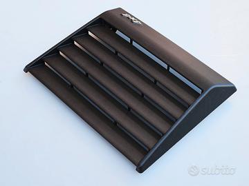 Presa Aria Cofano Fiat PANDA con Logo 4x4. Materiale plastico per esterno caricato con fibra di carbonio. Ottima finitura, pronto per essere montato. In alternativa può essere verniciato applicando prima un primer per plastica. Fornito di prigionieri (già assemblati sulla presa d'aria) rondelle e dadi, si monta in un minuto.