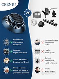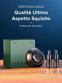 Ceeniu Profumatore Auto F21, Nuovo Modello 2023, Deodorante Solare Rotante, Design UFO in Lega di Alluminio, Silenzioso, Fragranza Fai-da-te, Accessorio Premium, 2 Oli Essenziali Inclusi ❤️【Assistenza CeeniuCare】: CeeniuCare offre un servizio di reso e sostituzione senza problemi per 1 anno. Se hai domande sul nostro deodorante per auto Ceeniu, non esitare a contattarci e ti risponderemo gentilmente entro 24 ore. 💎【Alimentazione Solare e Rotazione】: Il deodorante per auto F21 è dotato di un motore silenzioso alimentato a energia solare, prodotto in Germania, che rilascia una fragranza a una velocità di 500 rotazioni al minuto sotto la luce solare, offrendo un'esperienza di aria fresca e piacevole per la tua auto. La sua caratteristica unica di rotazione aggiunge un tocco di divertimento, rendendo l'interno della tua auto dinamico e vivace. 💎【Profumi Naturali】: Vengono utilizzati solo profumi al 100% naturali, prodotti dalla società francese Robertet. Il prodotto ha ottenuto la certificazione SGS non tossica, garantendo che sia sicuro da utilizzare anche per donne in gravidanza e bambini. 💎【Durata di 10 Anni】: L'anello aromatico è stato migliorato con ceramica microporosa, che è più resistente rispetto ai modelli precedenti in PE o legno di faggio. Anche dopo dieci anni di utilizzo ripetuto, nessuna sostanza nociva verrà rilasciata. 💎【Profumo Fai-da-te】: Il nostro deodorante per auto è perfetto per gli amanti del fai-da-te. Puoi aggiungere l'olio essenziale di tua scelta all'anello in ceramica e riempire il tuo spazio di una meravigliosa fragranza! 💎【Contenuto della confezione】: Diffusori*1, olio essenziale di colonia 4ml * 1, olio essenziale Azure Ocean 4ml * 1