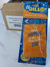 Profumatore per auto del brand#DILLO!della linea HAPPY CAR nella fragranza "Muschio e Sali Minerali". Prezzo unitario 0.90€ Disponibili 22 pezzi totali. Venduti in blocco in scatola originale del prodotto. Acquistando dal mio profilo hai la garanzia totale di serietà, imballaggio impeccabile e spedizione senza indugio. 📯Ai messaggi inviati tra Sabato sera e Domenica tutto il giorno rispondo al massimo entro lunedì mattina.