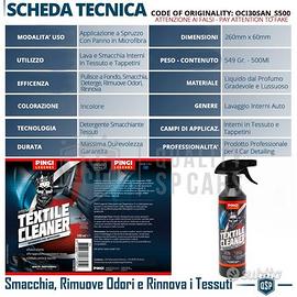 Spray Pulizia INTERNI Auto in Tessuto PROFESSIONALE Originale PINGI LEGENDS | Pulisce a Fondo, Smacchia e dona una Lucentezza Naturale ai Tessuti; Rimuove Cattivi Odori e Rilascia un Profumo Piacevole e Lussuoso. Studiato per Ottenere il Massimo Risultato su Sedili in Stoffa e Tappetini | MADE IN EUROPE LEGENDS: Linea Per Professionisti del Car Detailing - PULISCE E SMACCHIA | Pulisce a Fondo e Smacchia anche le Macchie più Ostinate Ravvivando i Colori dei Tessuti - STOP ODORI | Rimuove i Cattivi Odori lasciando posto ad un Profumo Gradevole - FACILITA' D' USO | Permette il Lavaggio Completo Senza Necessità di Risciacquo e non Lasciando Aloni COMPATIBILITÀ: "" Non Usare su Pelle Scamosciata o Nabuk "" - Pulizia Sedili in Tessuto - Pulizia Tappetini in Tessuto - Pulizia Stoffe e Rimozione Macchie APPLICAZIONE: - Spruzzare Uniformemente Sulla Superficie da Trattare - Attendere qualche Secondo - Assorbire il Liquido con un Panno In Microfibra Pulito - Per rimozione Macchie, Lasciare agire per alcuni minuti - Assorbire il Liquido con un Panno in Microfibra - Ripetere più volte fino alla scomparsa della Macchia DETTAGLI TECNICI: - Materiale: Liquido - Formula: Detergente Smacchiante Tessuti - Utilizzo: a Spruzzo - Brand: Pingi LEGENDS - Colore: Incolore - Peso: 549 Gr - Contenuto: 500 Ml - Dimensioni: 260mm x 60mm - Confezionamento: Box Originale - Campi d' Applicazione: Sedili in Tessuto, Tappetini, Tessuti - Funzioni: Pulisce a Fondo, Smacchia, Deterge, Rimuove Odori, Rinnova PER INFO CONTATTARE AL 3927091031 ANCHE LINEA WhatsApp OPPURE VIA E-MAIL: rtautoitalia2018@libero.it CONSEGNA: - Effettuiamo Spedizioni 24-48H in TUTTA ITALIA - Ritiro in Sede con Possibilità di Visionare il Prodotto - Vendiamo solo Articoli Nuovi PAGAMENTI: - PayPal - Con Carta - Bonifico Bancario - Alla Consegna con Contrassegno