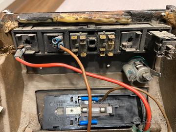Comandi elettrici originali e perfettamente funzionanti per cruscotto Fiat 124 Spider America, Europa, Volumex, Dino Fiat e Ferrari per alza cristalli elettrici, blocco porte , fendinebbia , luce abitacolo accendi sigari, cornice, il tutto in blocco ad €200,00.