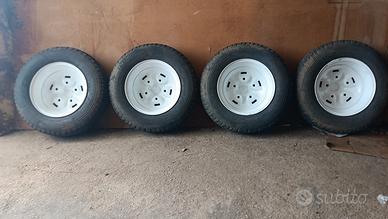 Quattro Ruote complete con cerchi Rostyle Originali 16", PCD 5x165 larghezza 6J, in acciaio, gommati con pneumatici Dunlop M+S 205 R16 105S Rinforzati per land Rover Defender. € 280,00