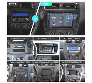 Riferimento: 15R1P206221 RADIO GPS ANDROID 11 PER VOLKSWAGEN VW SEAT SKODA HEXA-CORE 4GB RAM 64GB ROM 9 pollici Hexa-Core DDR4 4GB RAM + 64GB ROM Sistema multimedia GPS Android con CarPlay, Android Auto e DSP integrati Modelli e anni compatibili Volkswagen: Amarok (2010-2015) Beetle (2011-2015) Caddy (2004-2015) EOS (2006-2015) Golf MK5 / V5 / A5 / 1K (Variant / GTI / Estate) (2003 – 2009) Golf MK6 / Ⅵ6 / A6 / 5K (GTI / Wagon / R / Variant / Estate / Cabriolet) (2008-2013) Golf Plus (2004-2013) Jetta V / A5 / 1K (2005-2009) Jetta Vl / A6 / 1B (2010-2015) Passat B6 / 3C (Estate / Sedan / Wagon) (2005-2010) Passat B7 / 3C(Estate / Sedan / Wagon / Alltrack)(2010-2014) Passat CC (2008-2011) Polo MK5 / 6R(GTI / Sedan)(2009-2014) Scirocco Mk3 (2008-2011) Sharan (2010-2014) Touran (2003-2014) Tiguan (2007-2013) T5 Multivan (2010-2013) T5 Transporter (2010-2013) T5 Caravelle (2010-2015) Skoda: Fabia (2007-2014) Fabia Combi (2008-2014) Roomster (2006-2015) Octavia (2007-2012) Yeti (2009-2015) Superb (2008-2015) Seat: Alhambra (2010-2015) Altea (2004-2015) Altea XL (2007-2015) Leon Mk2 (2005-2012) Toledo (2004-2015) **Nota: controllare la forma e le dimensioni indicate nell'annuncio, specialmente se si possiede un VW T5 o Skoda** Pannello Frontale: 220*210*130mm Note: 1. Se la tua auto è un Seat come nell'immagine del poster, potresti aver bisogno di una cornice come quelle usate nei navigatori originali. 2. Non compatibile con i sistemi audio Dynaudio o Fender 3. Controlla l'interno della tua auto, specialmente se possiedi un VW T5 Specifiche: Software: Android 11.0 Schermo HD da 9.0" touch screen 1024*600px Processore RK3399-PX6 (2xCortex-A73 + 4xCortex-A53) Hexa-Core 64bit @1.8GHz RAM 4GB, memoria interna 64GB Navigazione GPS CAR AutoPlay (Bluetooth e USB) AndroidAuto (con cavo, USB) Uscita HDMI DSP (Digit