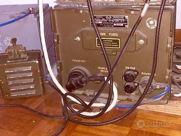 Completo di tasto telegrafico cosciale, microfono, alimentatore Dinamotore a 12 24 48 Volt, altoparlante e zaino, funzionante sia in ricezione che in trasmissione.