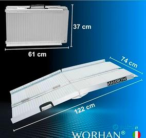 Rampa in alluminio pieghevole a valigia con maniglia per trasporto. circa 122cm completamente estesa e 280kg di portata.