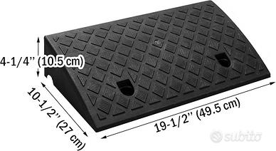 Disponibile un set di 2 rampe per soglia in plastica resistente, per vialetto, bacino di carico, marciapiede, auto, scooter, sedia a rotelle. Su una superficie piana, questa rampa può supportare fino a 1.360 kg di peso, consentendo ai veicoli standard di essere guidati in modo sicuro su o giù per terreni irregolari o sul marciapiede. Per il fissaggio sono presenti dei fori adatti a tasselli M8x100mm (non inclusi).