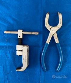 Assortimento di spessori nuovi e usati per la registrazione del gioco valvole dei motori Volvo B19 B200 Attrezzi specifici per la sostituzione degli spessori Fotocopie manuale istruzioni