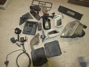 coppia ammortizzatori post., braccetto e semiasse ant. (entrambi da ricondizionare), scatola sterzo e piantone sterzo (da ricondizionare), ponte post., ammortizzatore ant. dx privo di molla, pannello abitacolo laterale post. dx in plastica , pedaliere acceleratore e freno , serbatoio riserva, attacchi para polvere per pinze freni post., mozzi post., stop post., freccia ant. dx , modanatura in plastica sopra stop, fanale ant. dx., lunotto/vetro post., specchietto retrovisore, leva tergicristallo, alcuni pulsanti interni abitacolo, blocchetti aperture porte (quelle interne abitacolo), intercooler (da ricondizionare), ventola radiatore (solo motore elettrico e supporto), staffe e supporti vari per vano motore, alternatore (da ricondizionare) motorino d'avviamento, specchietto cortesia dx, posacenere.