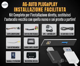 L'installazione avviene con il sistema plug e play AG-AUTO, che assicura un montaggio semplice come la radio originale, anche in autonomia. Tutti i cavi sono separati, etichettati con manuale in italiano.