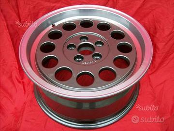 N. 4 cerchi in lega,nuovi,di attuale produzione italiana,CON BORDO DIAMANTATO E INTERNO SCURO,per vetture alfa romeo alfetta gtv 2,5 v6,alfa 75t.s. turbo e 3.0 v6,164 ecc.Misura 7x15,attacco 5x98 et 25,compresi loghi centrali.Whells rims felgen llantas jantes.Euro 1000 iva comp.+ spedizione.Altre foto su richiesta anche WhatsApp.Altre foto www.cerchiautodepoca.com.Info 3472511545