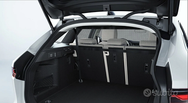 Comoda rete divisoria installabile tramite i ganci a "D" del vano di carico e fissata, superiormente, al rivestimento interno del tettuccio