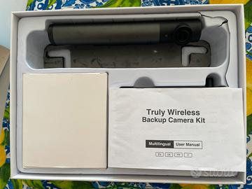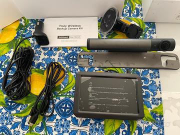 Completa di: telecamera HD impermeabile regolabile su qualsiasi inclinazione, schermo da 5” con linee guida di parcheggio, supporto adesivo con ventosa per posizionare lo schermo nell’abitacolo, presa 12v con cavo per l’alimentazione dello schermo e entrata USB, cavo di ricarica della telecamera USB - micro USB. Completo di libretto istruzioni (anche in italiano) molto chiare e tutti gli accessori a corredo. Facile da montare in quanto non ci sono cavi da passare essendo wireless.