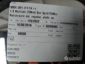 RETROVISORE ESTERNO SINISTRO FIAT 500X 2016