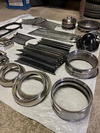 mascherine, ghiere fanali , borchie paraurto, plastiche fanalini , maniglie alzavetro, sigle, scudi centrali, rivestimenti piantone sterzo, raschiavetro ecc per giulia, gt, giulietta, vari modelli Alfa Romeo epoca