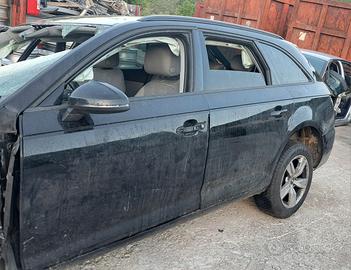 endo ricambi x Audi A 4 , modello B 9 , anno 2016 , 2.0 tdi , 110 kw , sigla codice motore DEU , muso , musata , paraurti posteriore , stop posteriore destro , cofano portellone posteriore , sportello , porta , portiera posteriore destra , serratura , vetri , motorino macchinetta alza vetri , pulsantiera , maniglia , pedale , sedili tappezzeria , pannelli , galleggiante , serbatoio , motore , cambio automatico , turbina , pompa , iniettori , marmitta , scarico , collettore , mozzi , fusello , pinze freno , dischi , ammortizzatori , sospensioni posteriori , tergicristalli , cruscotto kit air bag esploso , contachilometri strumentazione , volante , retro treno , motorino avviamento , turbina , compressore aria condizionata , comandi aria clima , devia luci , bauletto porta oggetti , centralina pompa abs , sonda , sensori , centralina motore , blocca sterzo , ponte , piantone , snodo , tetto , alette para sole , vaschetta acqua , cerchi