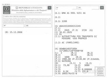 Mese di produzione: 12 Anno di produzione: 2008 Applicabilità marca: Bmw Applicabilità modello: 320 Vendiamo ricambi usati di BMW 320D SW immatricolata dicembre 2008 CILINDRATA: 1995 TD KW: 130 SIGLA MOTORE: N47D20A