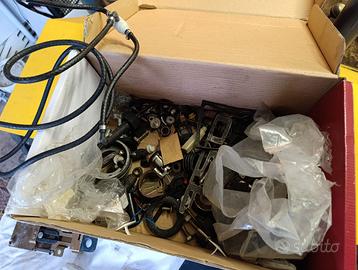 Vendo in blocco ricambi per BMW E30 a 100 euro. Valore devioluci 40 cadauno, interruttore fari 40. Logo BMW nuovo. Quello che VEDETE IN FOTO: pulsanti emergenza e lunotto, comando centralizzata più serratura baule, ganci cofano, maniglie finestrini, contachilometri, viteria varia ecc. NON CHIEDETEMI RICAMBI CHE EVIDENTEMENTE NON CI SONO IN FOTO.